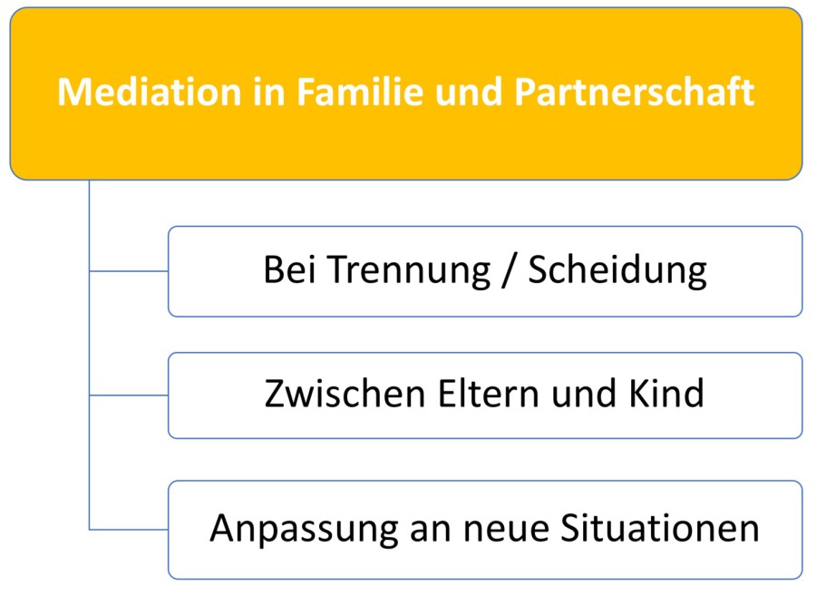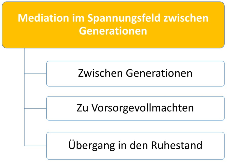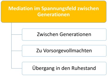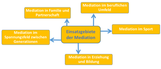 Nachfolgend sind beispielhaft die umfangreichen Anwendungsfelder für Mediation graphisch dargestellt.
